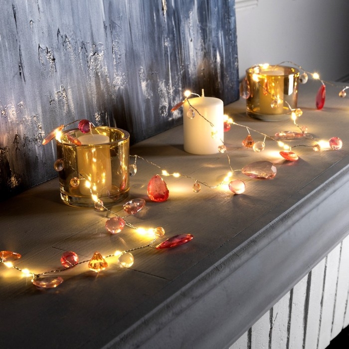 Гирлянда «Нить» 2 м роса с насадками «Бриолет», IP20, серебристая нить, 40 LED, батарейки ААх3 (нет в комплекте), свечение тёплое белое