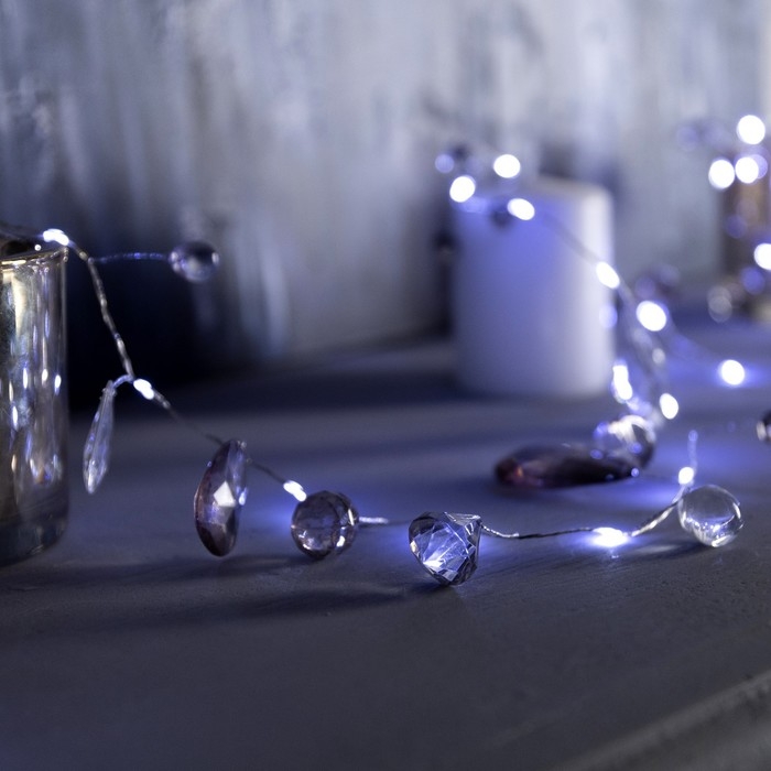 Гирлянда «Нить» 2 м роса с насадками «Ледяные лепестки», IP20, серебристая нить, 40 LED, батарейки ААх3 (нет в комплекте), свечение белое
