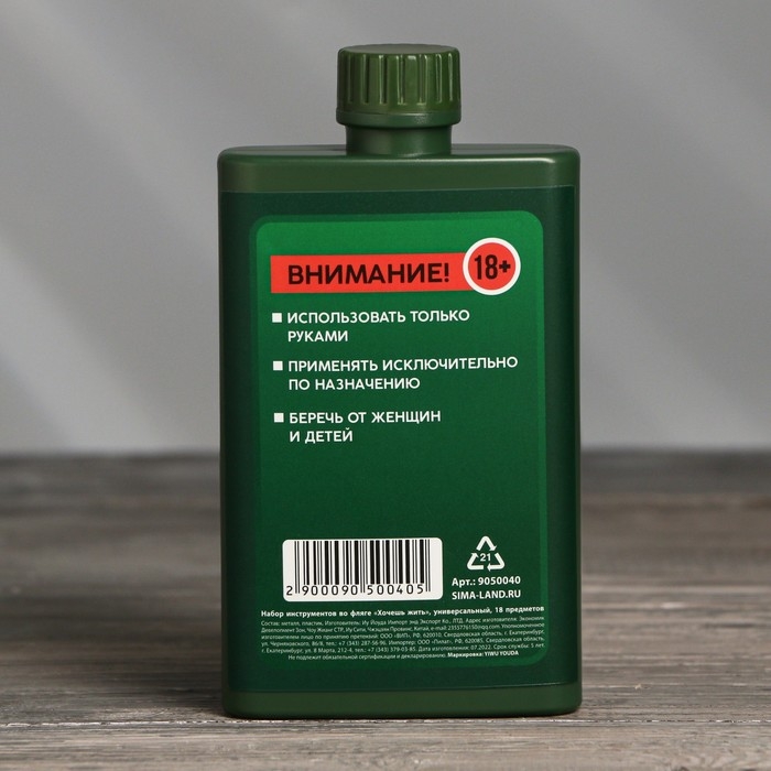 Набор отверток в фляге «Хочешь жить», универсальный, 18 предметов