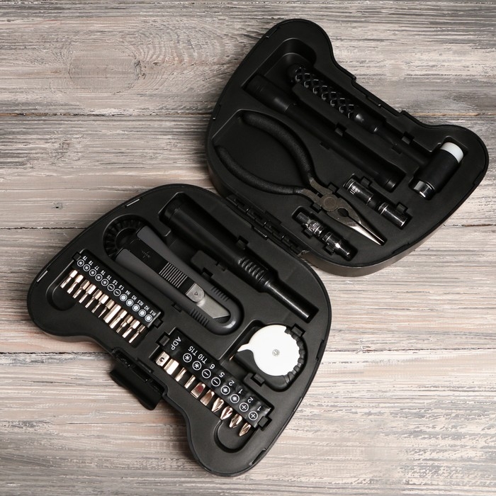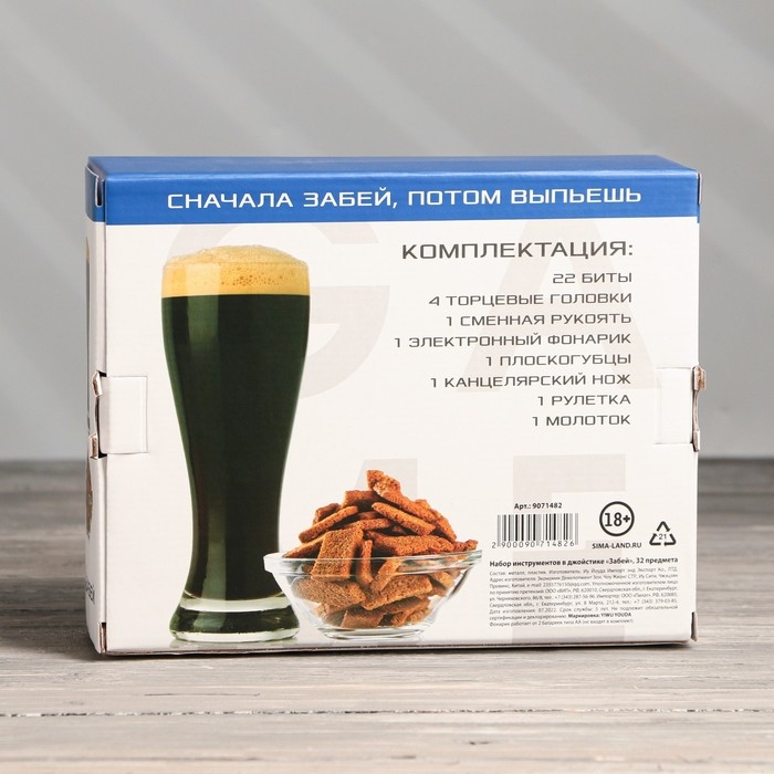 Биты, Молоток, Нож, Плоскогубцы, Рукоять, Рулетка, Торцевая головка, Фонарик