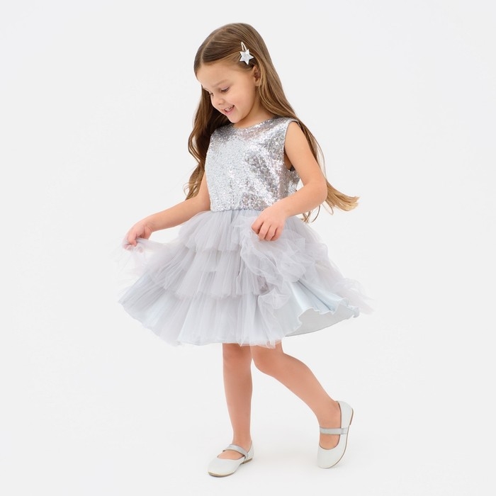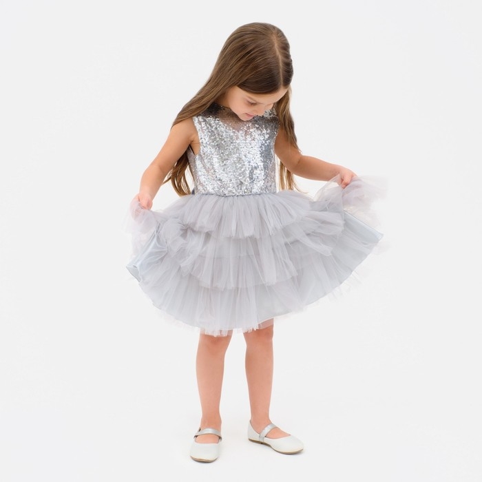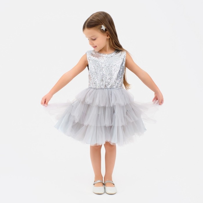 Платье для девочки с пайетками KAFTAN, размер 36 (134-140), цвет серый