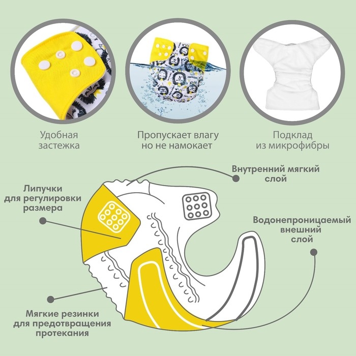 • Размер подгузника универсальный, подходит для детей от 3 до 15 кг, от рождения до 3 лет;