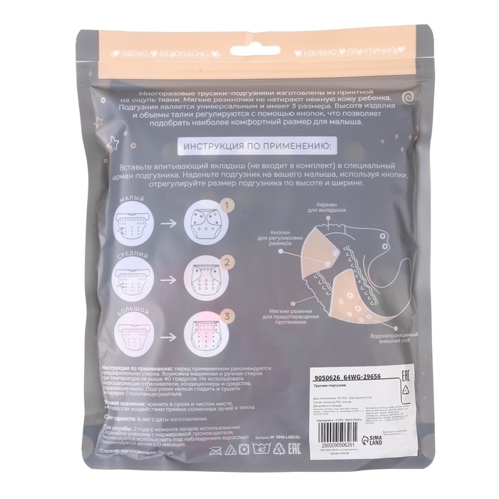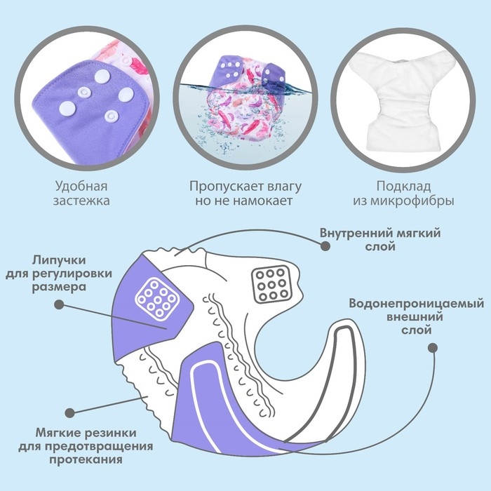 • Подгузник имеет удобный кармашек для вкладыша;
