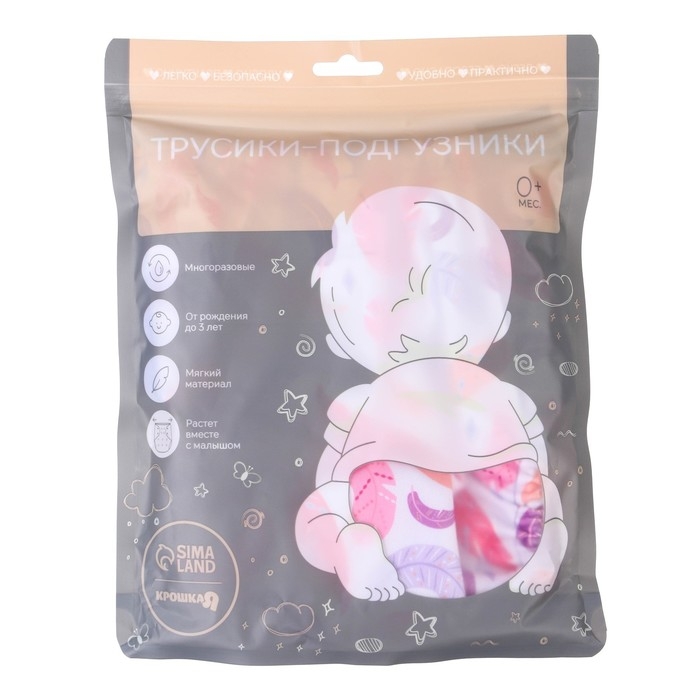 Многоразовый подгузник «Перья», 3-15 кг, разноцветный, Крошка Я