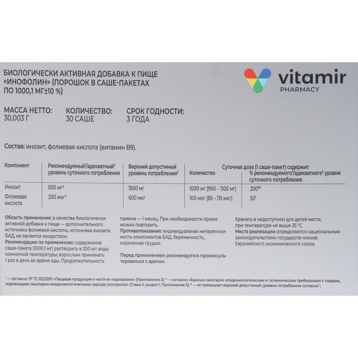 Инофолин (Инозитол +Фолиевая) ВИТАМИР саше-пакет №30