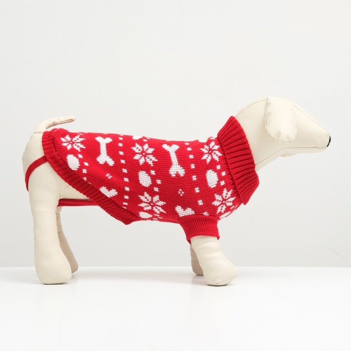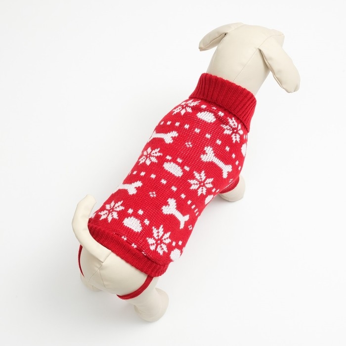 Свитер "Косточки-снежинки" для собак имеет уникальный новогодний дизайн, который придаст вашему питомцу особый вид во время праздников.