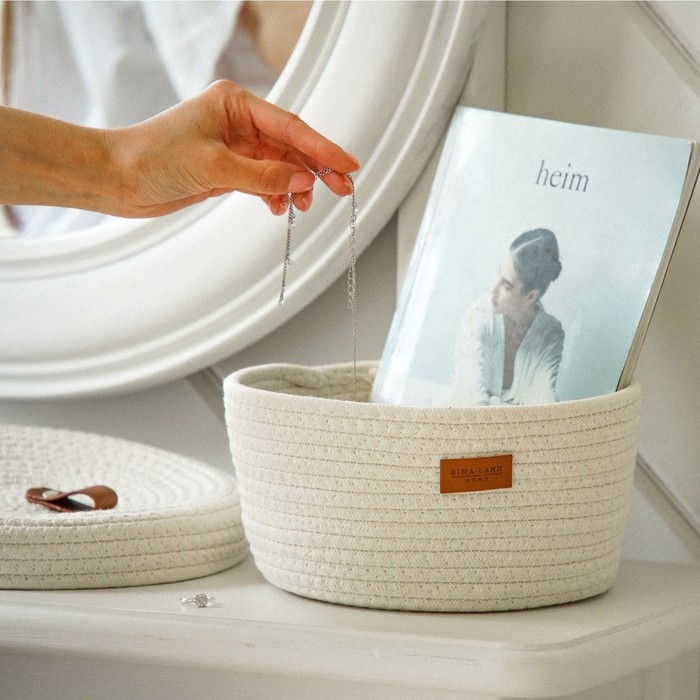Сочетание хлопка и натуральных материалов делает корзину экологичной и долговечной, а также приятной на ощупь. Она не только украшает ваш дом, но и является функциональным решением для хранения различных предметов. С её помощью можно организовать порядок в гардеробной, разместить полотенца на кухне или аккуратно хранить игрушки в детской комнате.