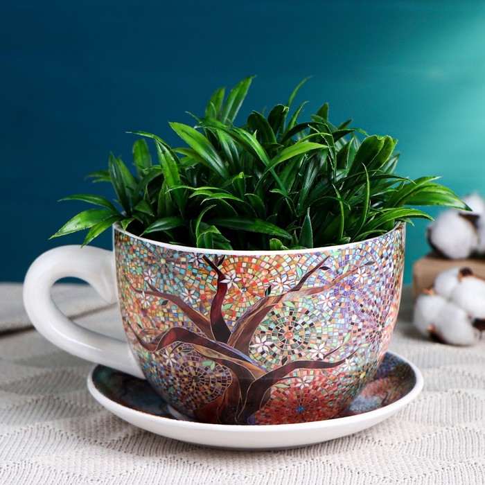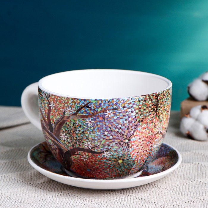Горшок в форме чашки "Эмма" мозаика, 19х15х10см