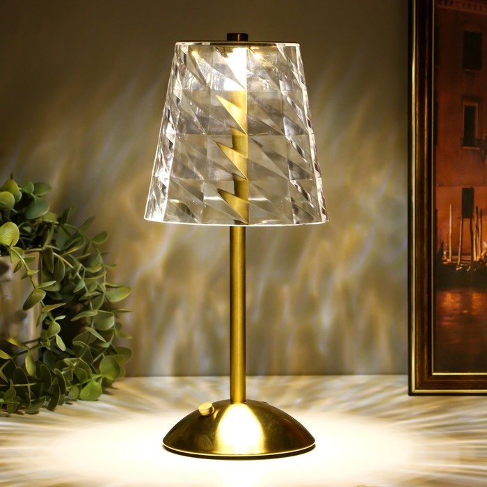 Настольная лампа "Берта" LED USB АКБ золото 13х13х29 см RISALUX