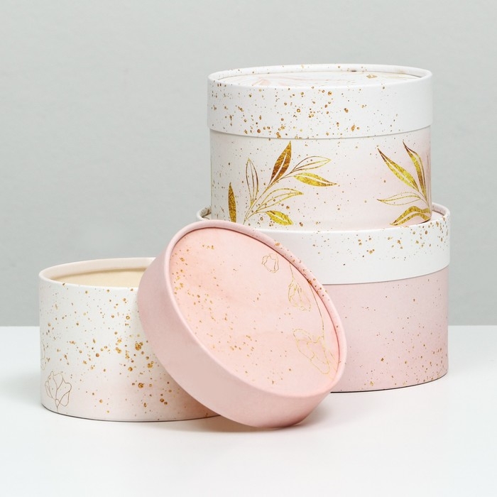 Набор шляпных коробок 3 в 1 "Нежность", завальцованная, 16 х 10, 14 х 9, 13 х 8,5 см