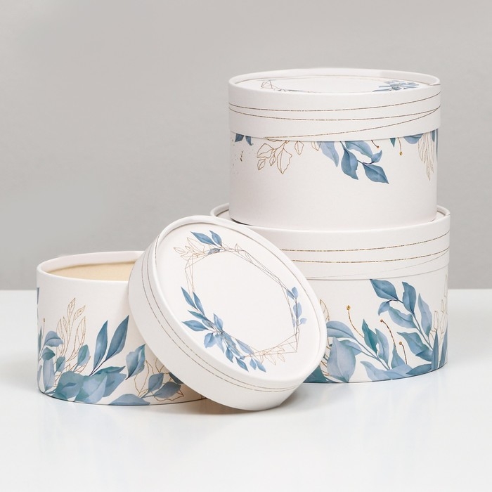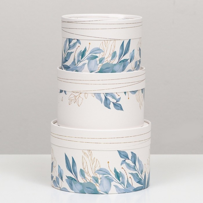 Набор шляпных коробок 3 в 1 "Цветочные узоры", завальцованная, 16 х 10, 14 х 9, 13 х 8,5 см