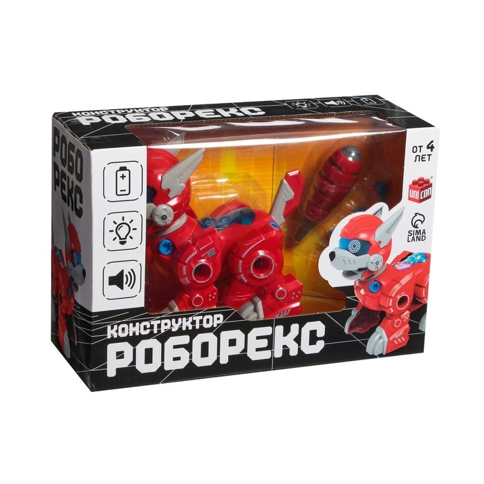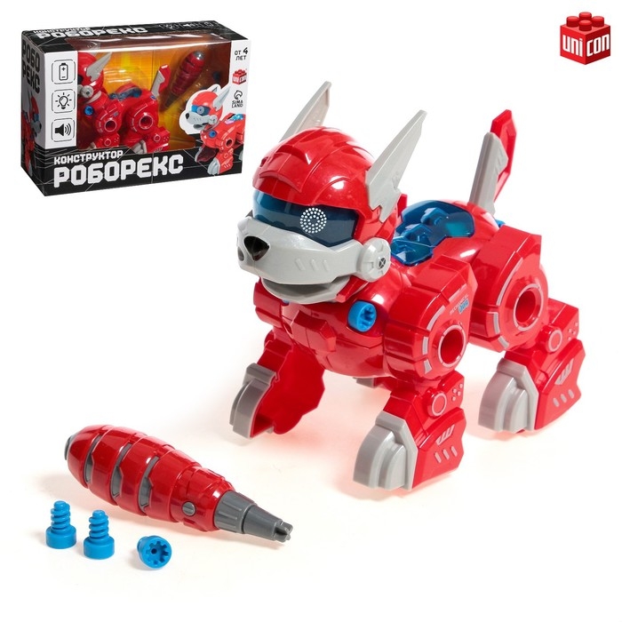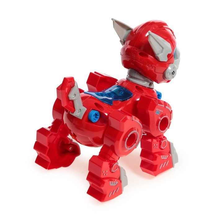Робот собака «Роборекс», винтовой конструктор, интерактивный: световые эффекты, 19 деталей, на батарейках, цвет красный