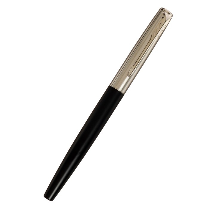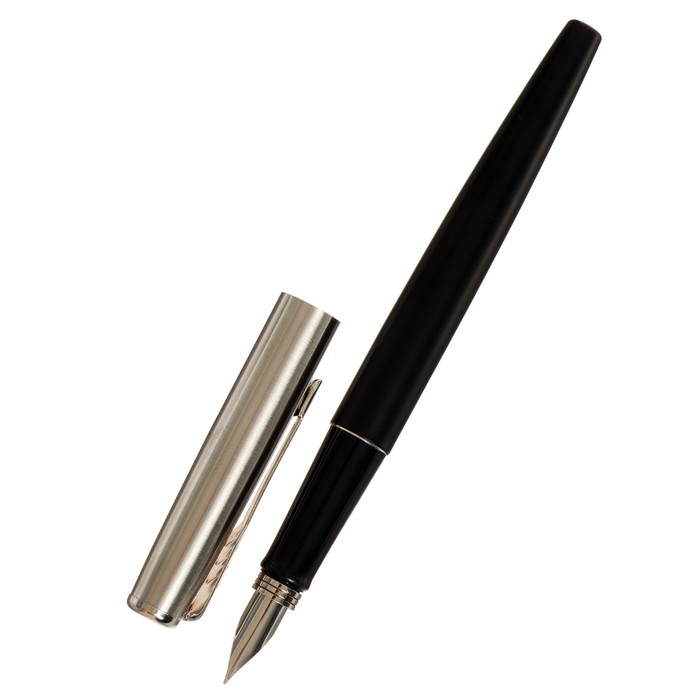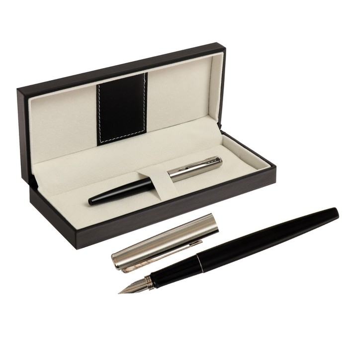 Ручка подарочная перьевая в кожзам футляре, корпус черный с серебром