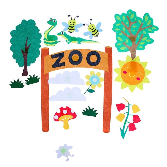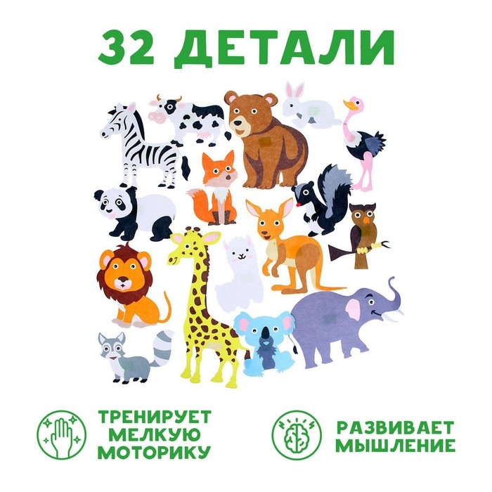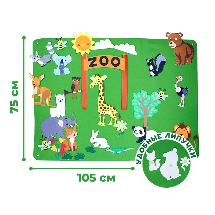 Бизиборд на стену из фетра «Зоопарк» 32 детали на липучке, размер поля — 105 × 75 см