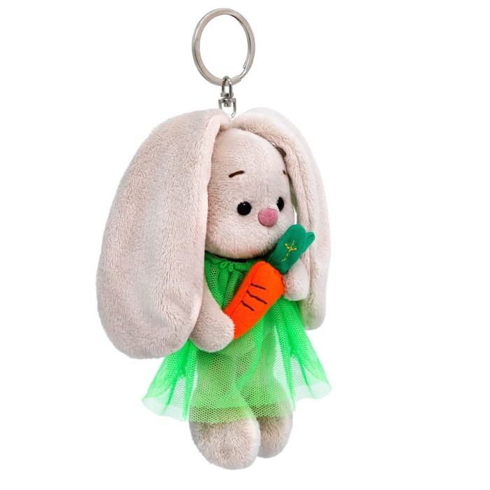 Мягкая игрушка-брелок «Зайка Ми в зелёном платье, с морковкой», 14 см