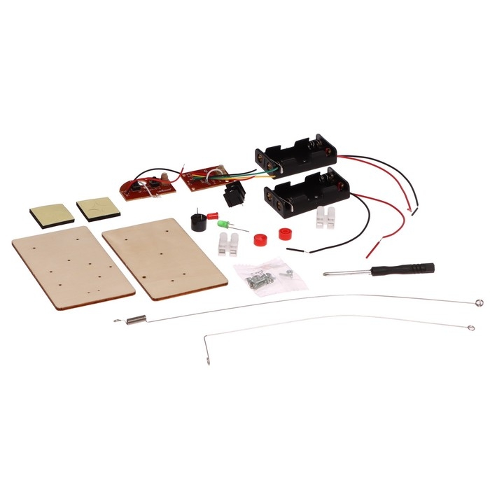 - В электронном конструкторе необходимо использовать батарейки 1,5 В. Такое напряжение безопасно для человека. Поэтому ребёнок сможет самостоятельно играть с набором, а вы — не переживать о его безопасности.