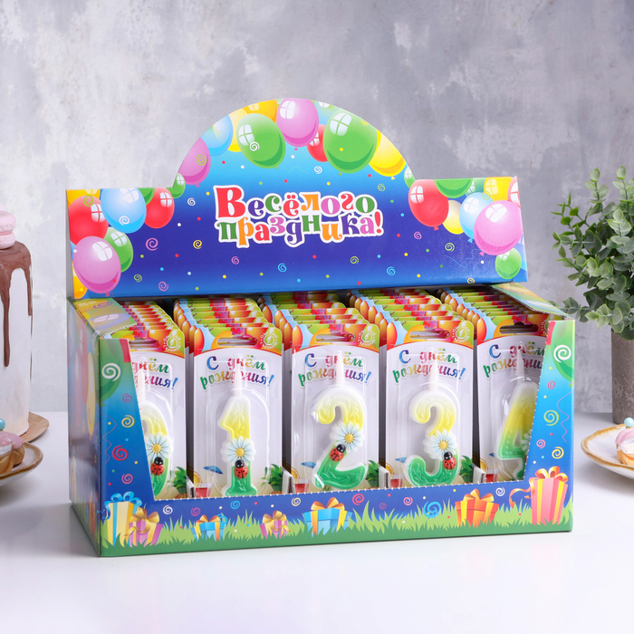 Шоу-бокс со свечами для торта цифры "Ромашки", 10,2 см, 50 штук