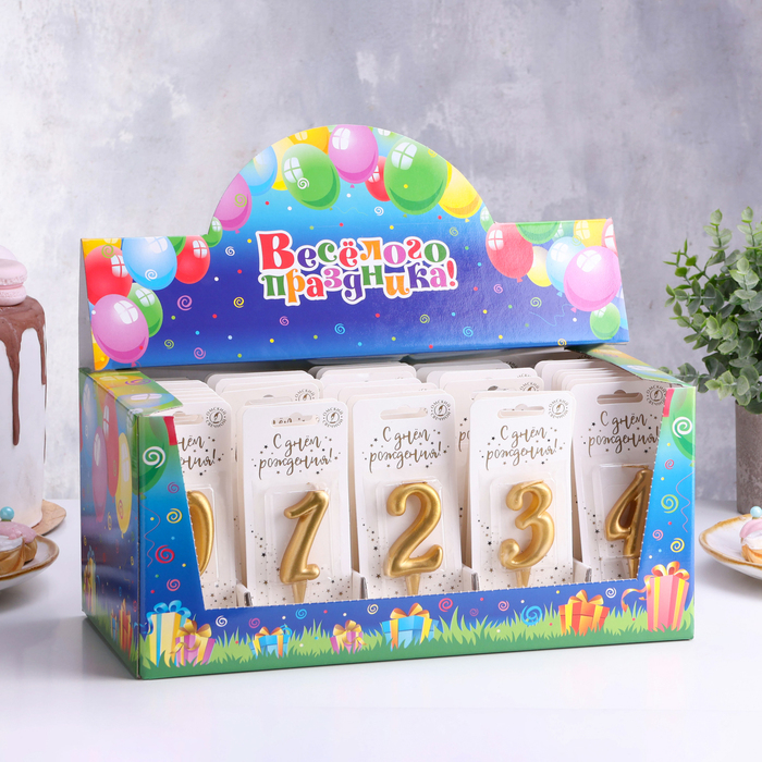 Шоу-бокс со свечами для торта цифры "Золотая", 5,5 см, 50 штук
