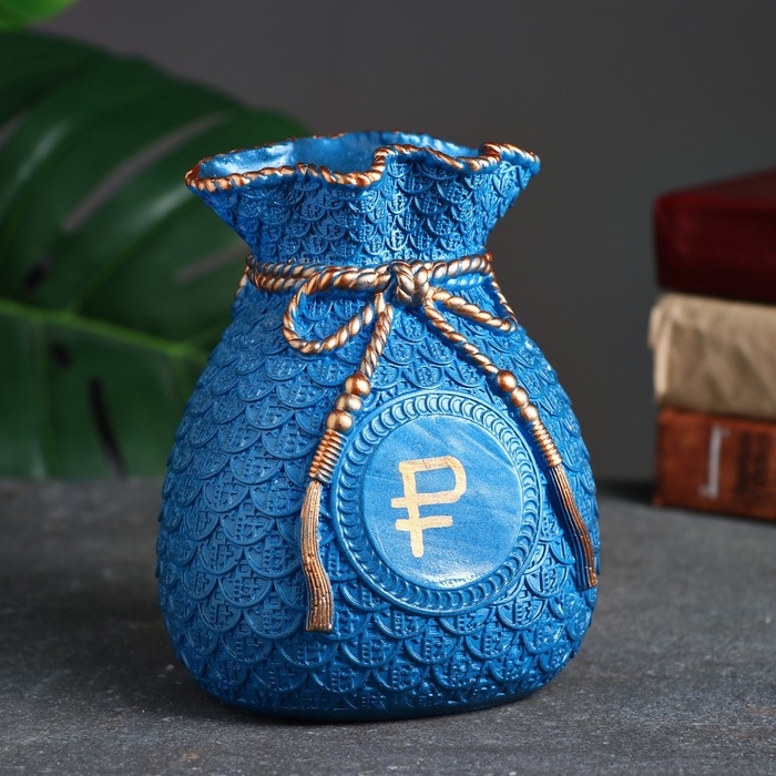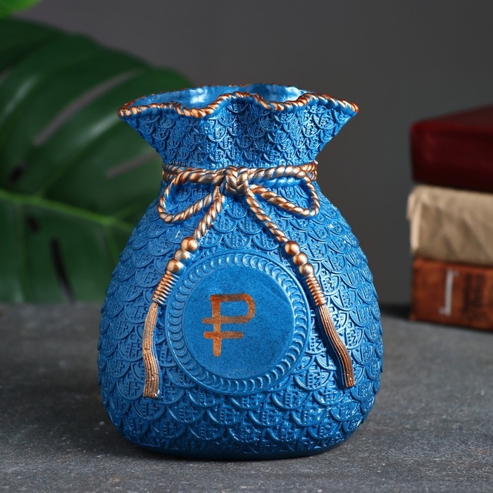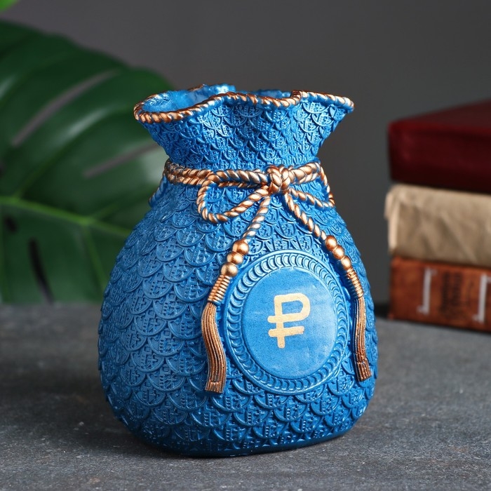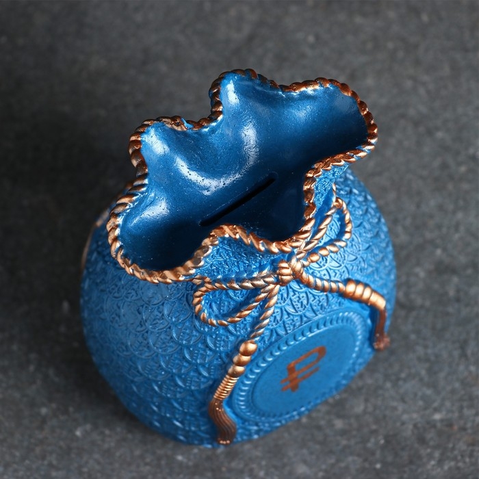 Копилка "Мешок денег" рубль золото, синий, 15 см