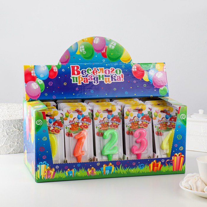Шоу-бокс со свечами для торта цифры "Мармеладки", 10,2 см 50 штук
