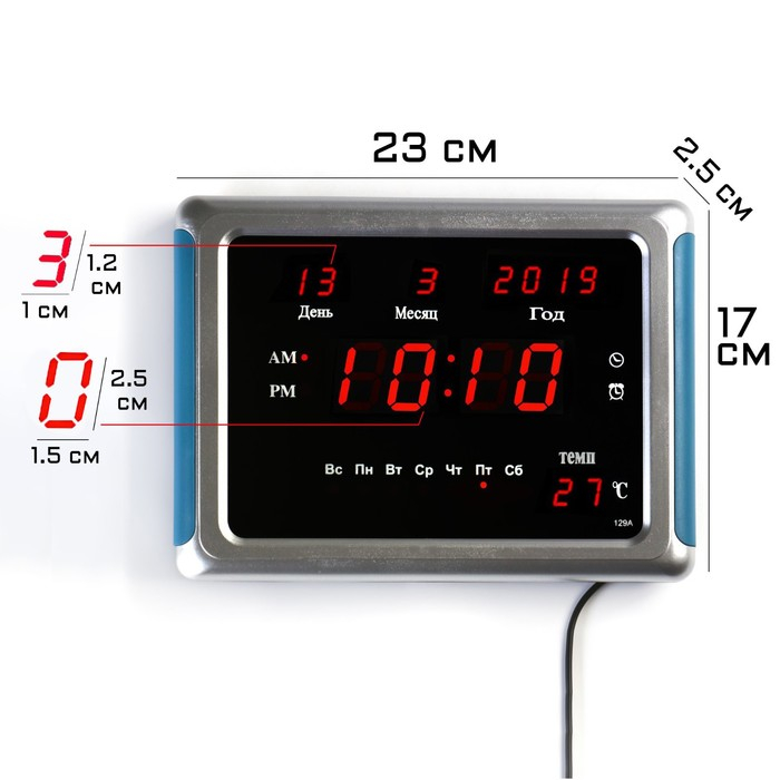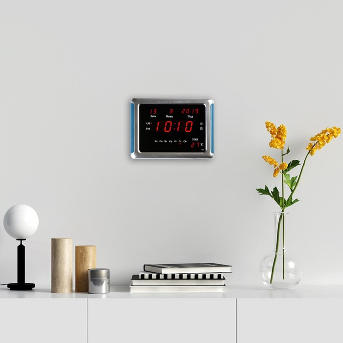 Часы электронные настенные, настольные, с будильником, 17 х 2.5 х 23 см