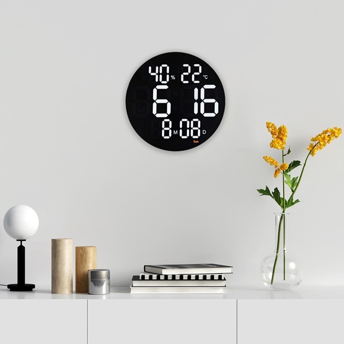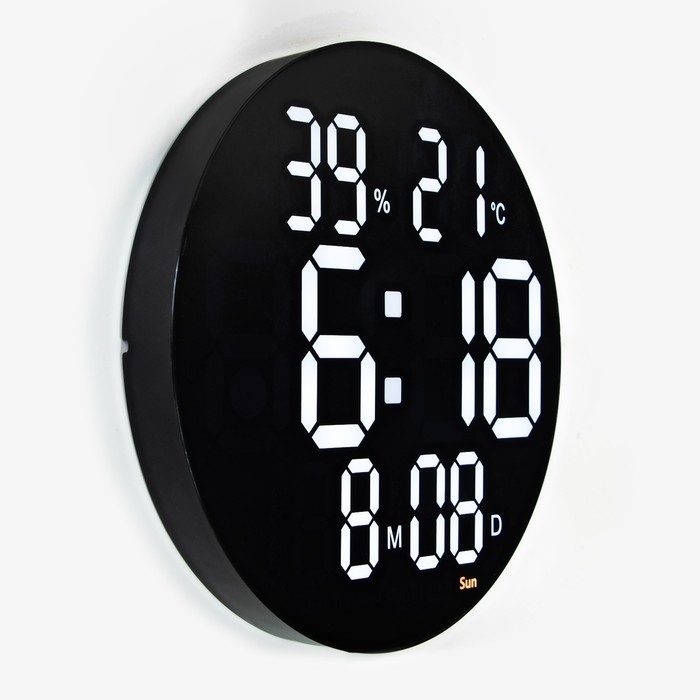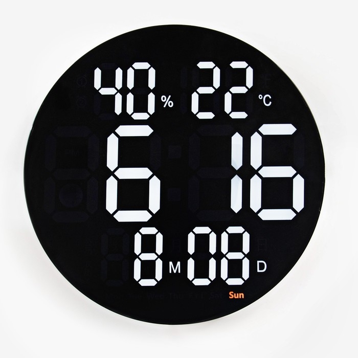 Часы настенные электронные, будильник, календарь, термометр, гигрометр, d-25 см, белые цифры
