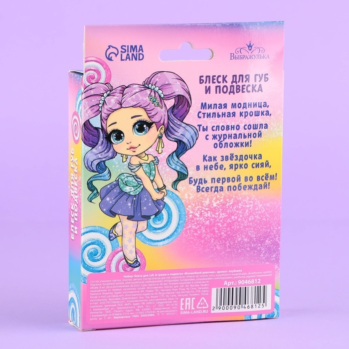 Блеск для губ с подвеской «Волшебной девочке», 8 гр, аромат клубники