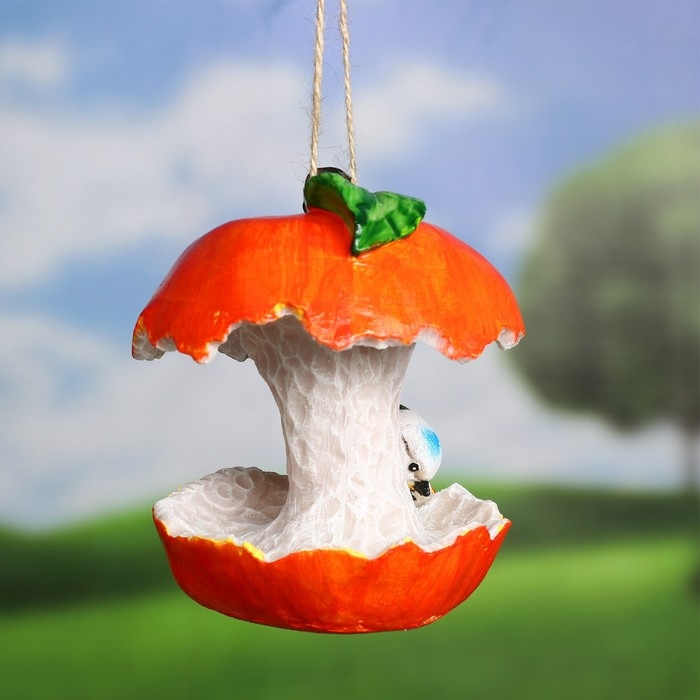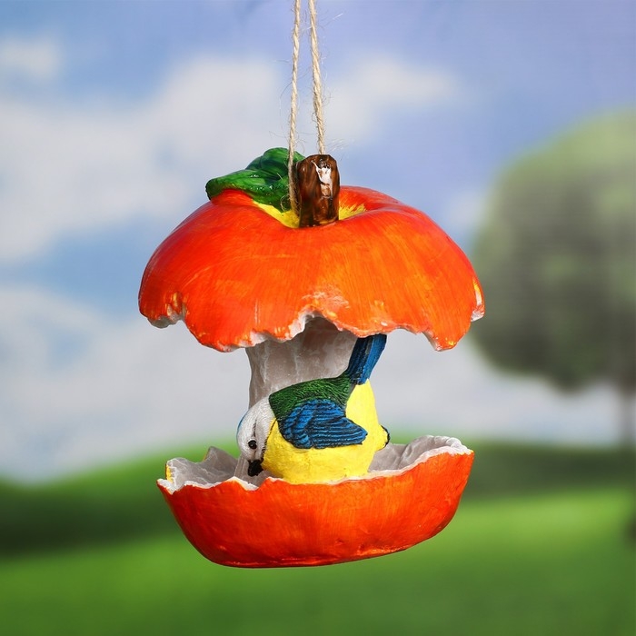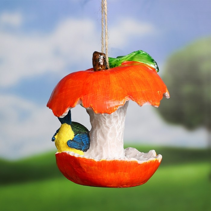 Подвесной декор "Кормушка яблоко с птичкой" 14х13х13см