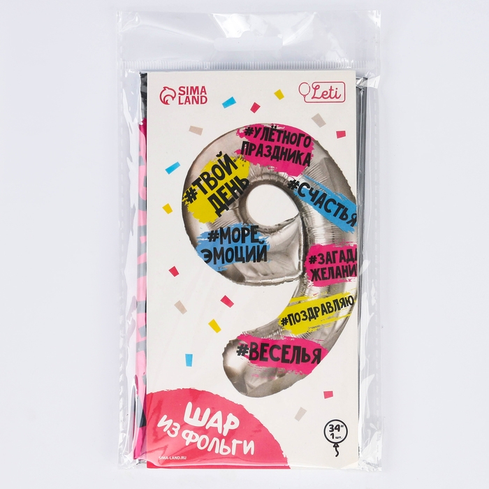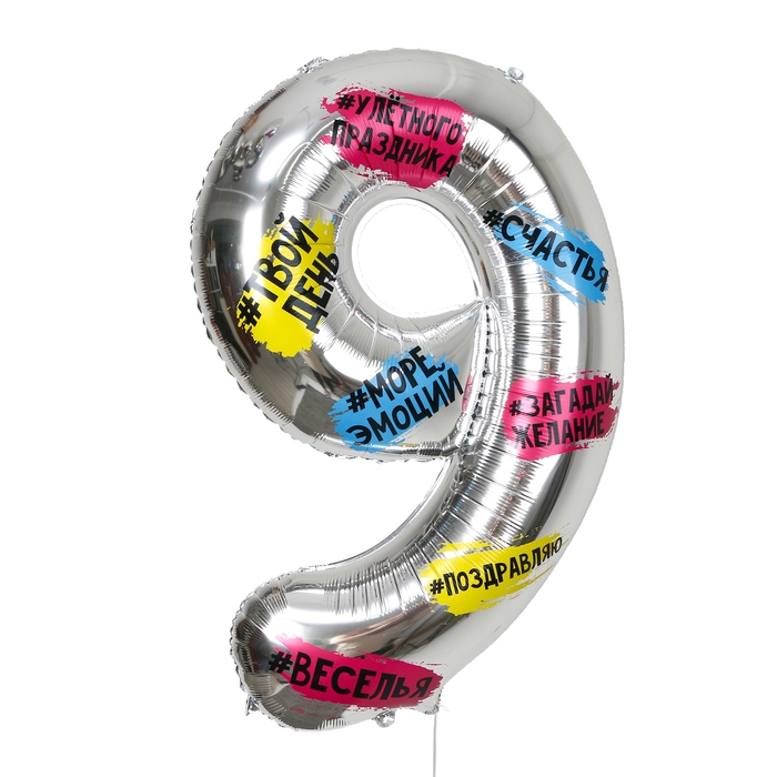Воздушный шар фольгированный 34" Цифра 9, хештеги, с подложкой