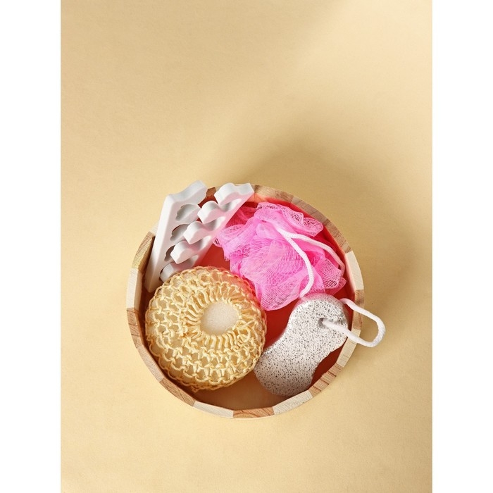Набор банный Доляна, 4 предмета (мочалка, губка, разделитель для пальцев, пемза), цвет МИКС