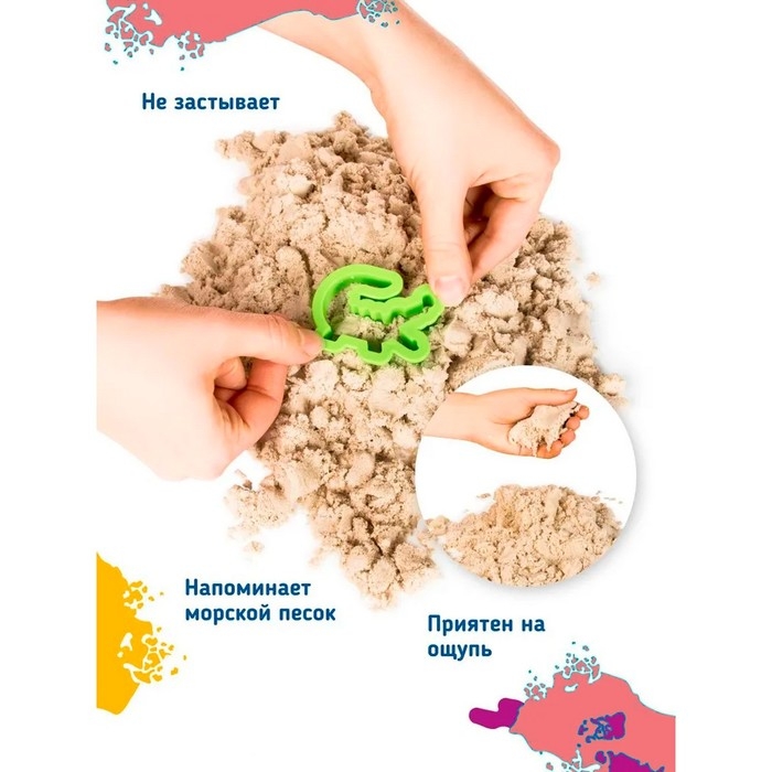 Умный песок приятен на ощупь, напоминает по консистенции морской песок. Он хорошо держит форму, не застывает на воздухе и не липнет. Поможет весело провести время детям разного возраста.