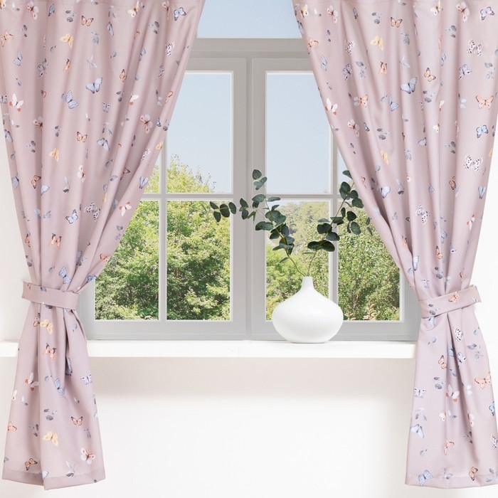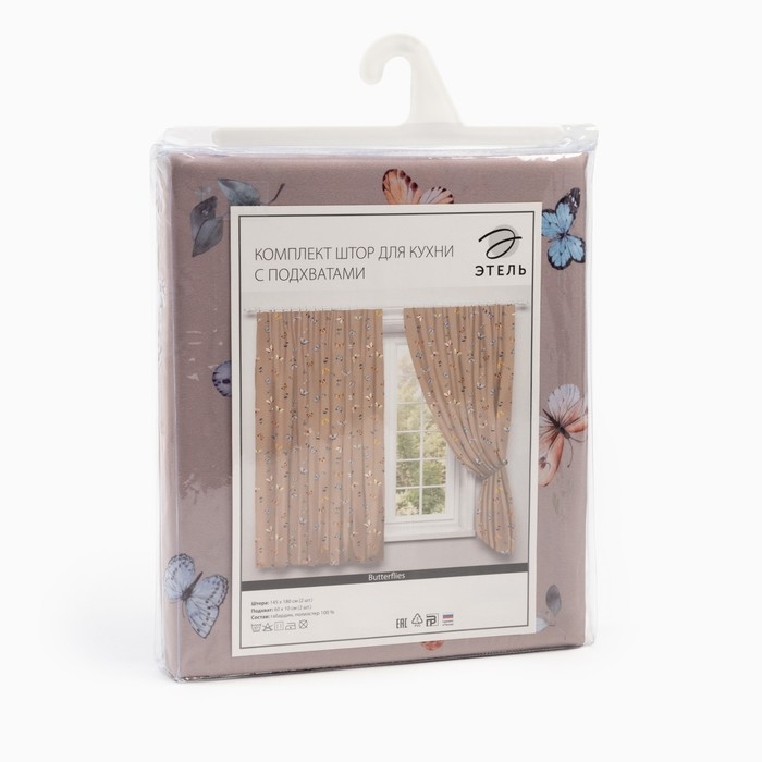 Комплект штор для кухни с подхватами Этель "Butterflies" 145х180 см - 2 шт, 100% п/э