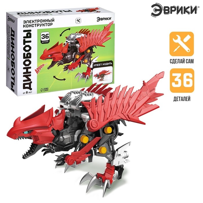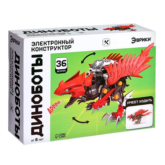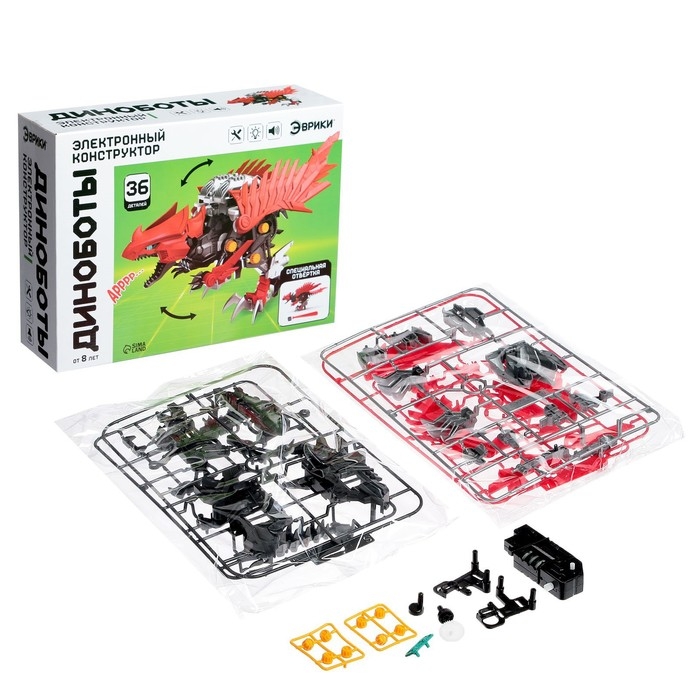 С электронным конструктором ребёнок соберёт могучего динозавра и освоит основы робототехники. Набор объединяет сразу три игрушки: конструктор, динозавра и робота. Конструктор понравится любителям собирать модели и оживлять их. Ведь динобот оснащён электродвигателем, а внушительный внешний вид древней рептилии никого не оставит равнодушным!