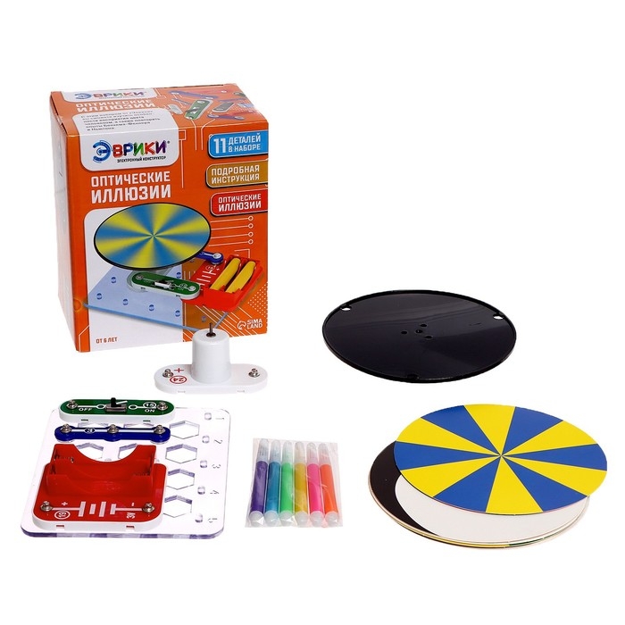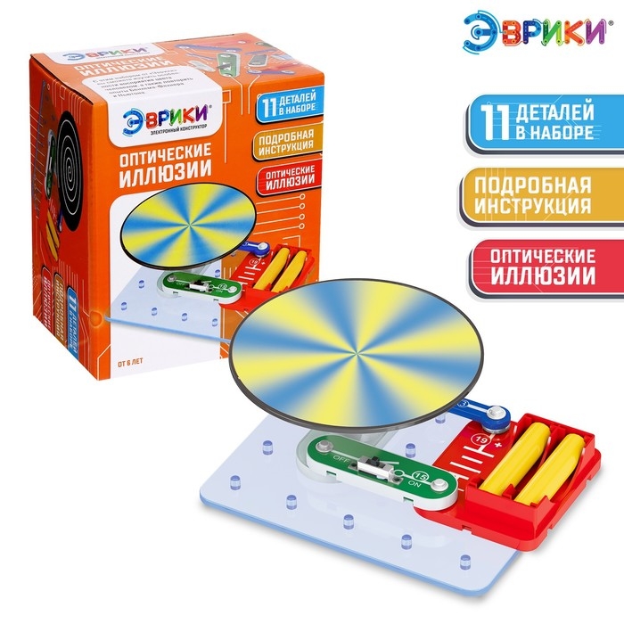 - Набор имеет красочную инструкцию: по ней ребёнок самостоятельно соберёт схему «Оптические иллюзии» и испытает её!