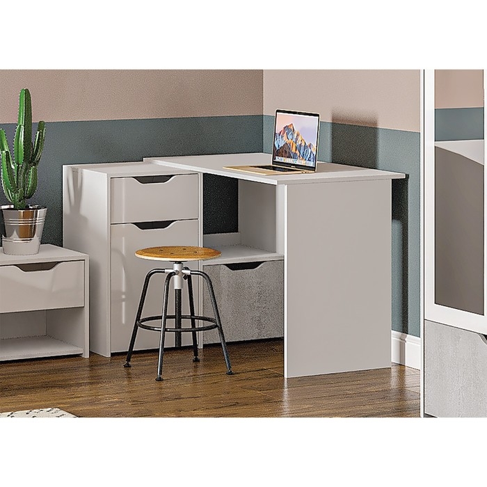 Стол угловой Левый Мико - отлично дополнит светлую и одновременно комфортную комнату, в современном стиле. Благодаря своим небольшим габаритам, столик будет гармонично смотреться в углу. Для оптимального хранения, предусмотрены ящики, где можно разместить свои принадлежности, и личные вещи, которые всегда должны быть под рукой. Столешница, предоставляет широкую и вместительную поверхность, для расположения ноутбука, документов и всего необходимого, которое дает возможность, чувствовать себя комфортно за своим рабочим местом.