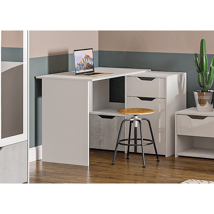 Стол угловой Правый Мико - отлично дополнит светлую и одновременно комфортную комнату, в современном стиле. Благодаря своим небольшим габаритам, столик будет гармонично смотреться в углу. Для оптимального хранения, предусмотрены ящики, где можно разместить свои принадлежности, и личные вещи, которые всегда должны быть под рукой. Столешница, предоставляет широкую и вместительную поверхность, для расположения ноутбука, документов и всего необходимого, которое дает возможность, чувствовать себя комфортно за своим рабочим местом.