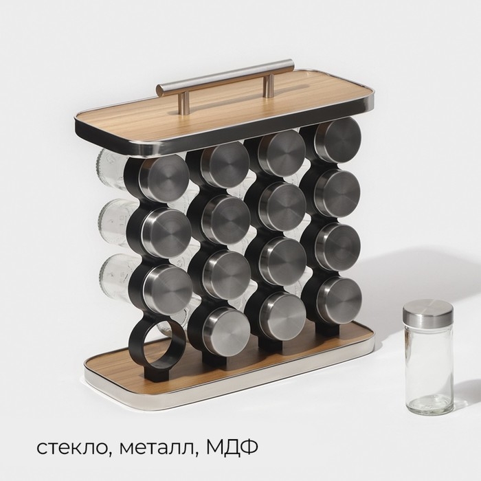 Набор стеклянных баночек для специй на подставке Magistro «Модерн», 16 шт