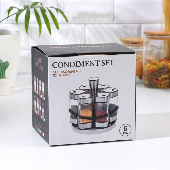 Набор для специй из стекла на подставке «Классика», 6 шт