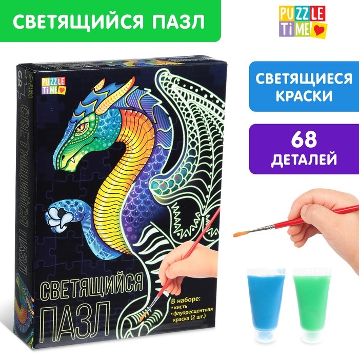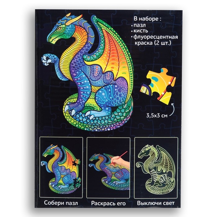 Светящийся пазл «Дракон», флуоресцентные краски, 68 деталей