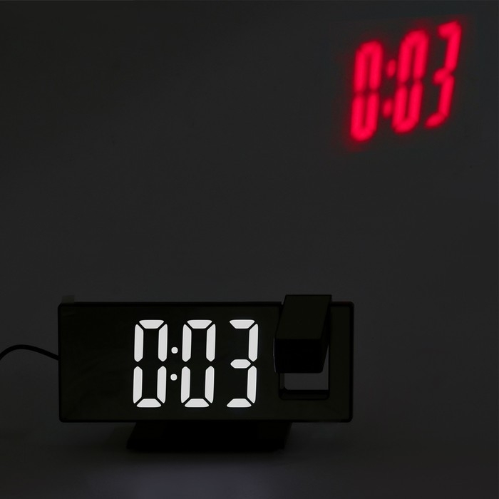 Часы-будильник электронные настольные с проекцией на потолок, 18.4 х 7.5 см, белая цифра