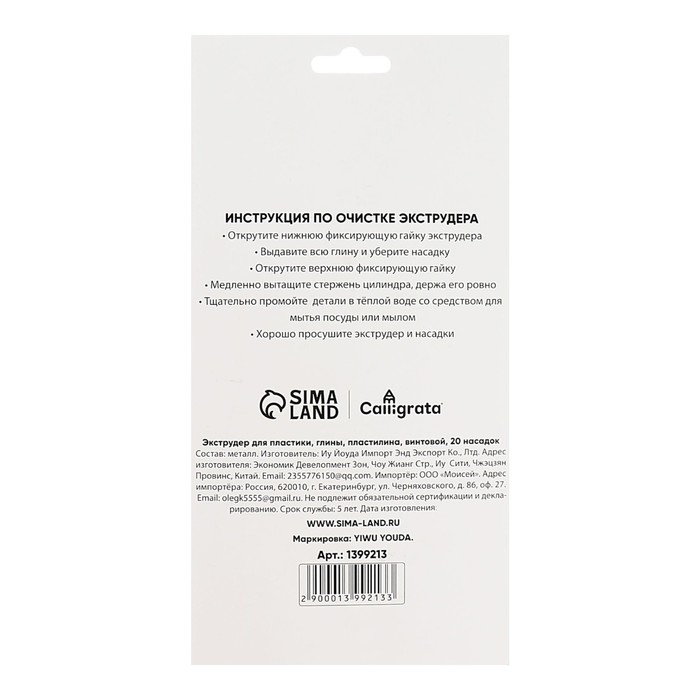 Экструдер металлический для пластики, винтовой, 19 насадок
