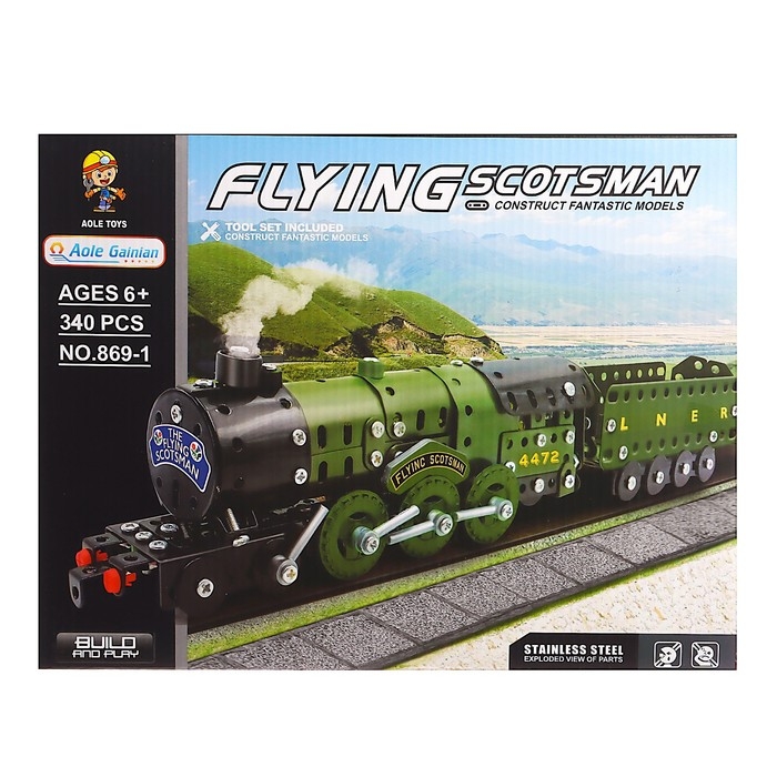 Конструктор металлический «Военный паровоз», 340 детали