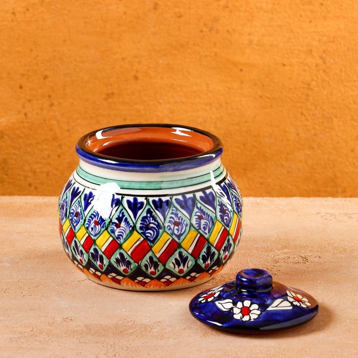 Сахарница Риштанская Керамика "Узоры", 500 мл, синяя