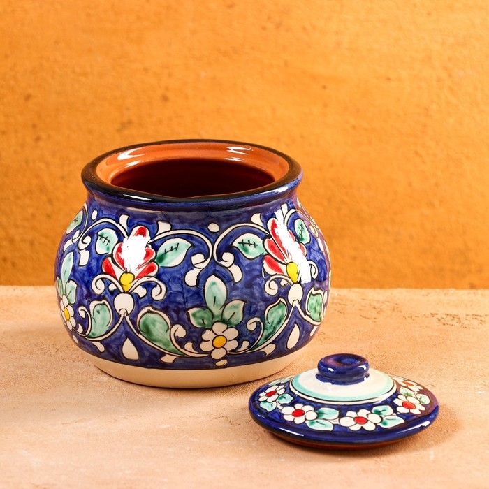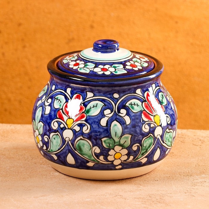 Сахарница Риштанская Керамика "Цветы", 1 л, синяя