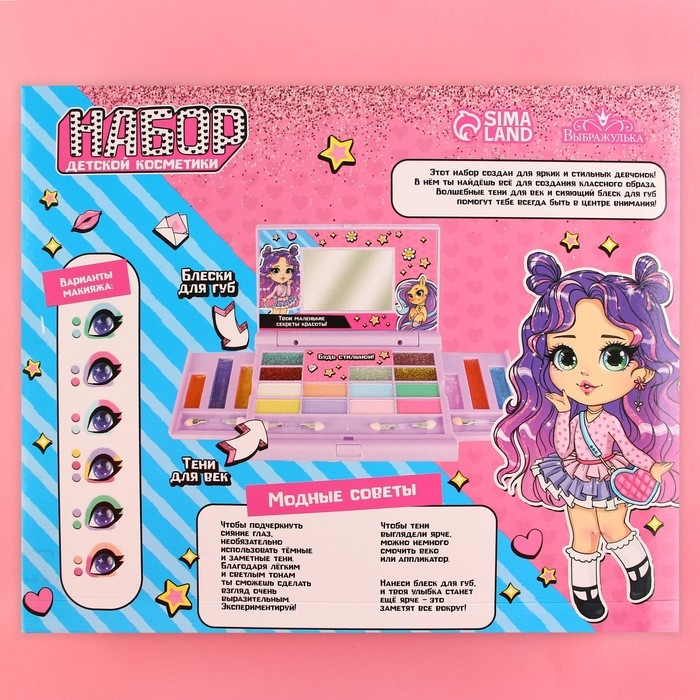Косметика в наборе позволит вашей малышке освоить навыки нанесения макияжа, научиться сочетать цвета, развить аккуратность и чувство меры – и все это в процессе увлекательной игры.