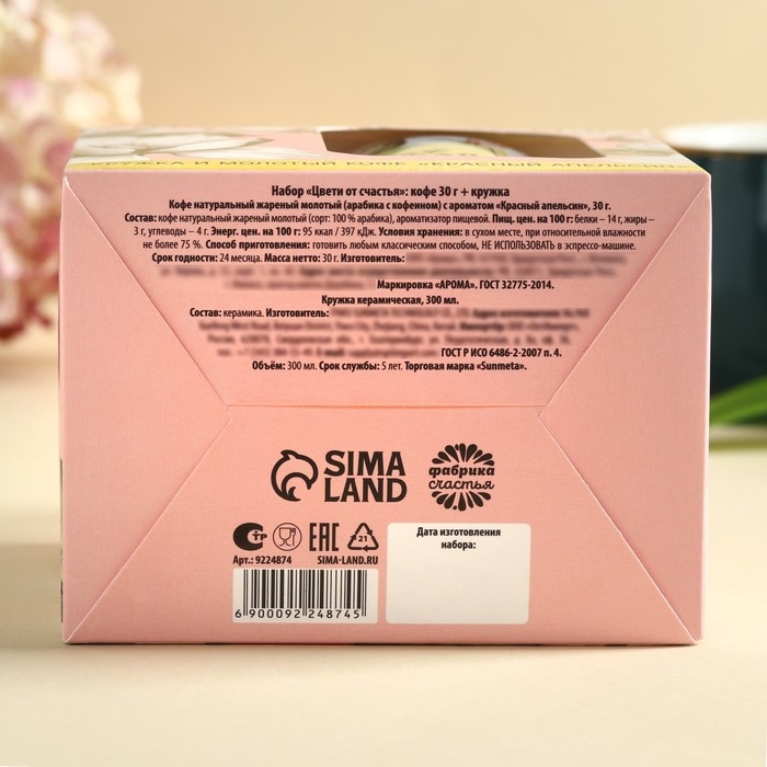 Набор «Цвети от счастья»: кофе молотый 30 г. и кружка 300 мл.