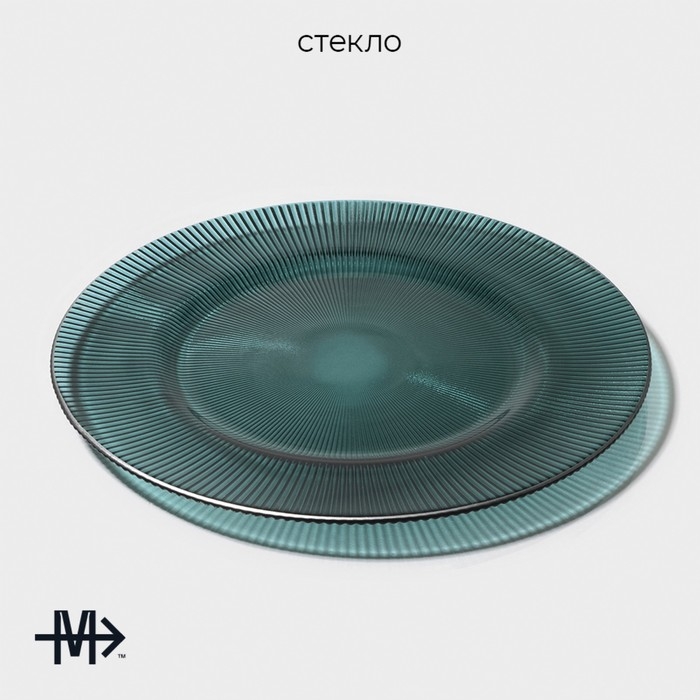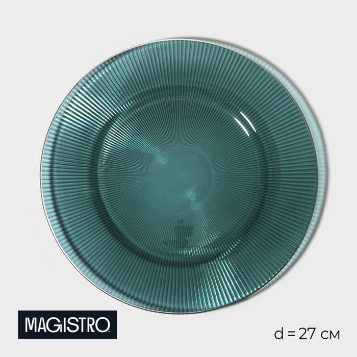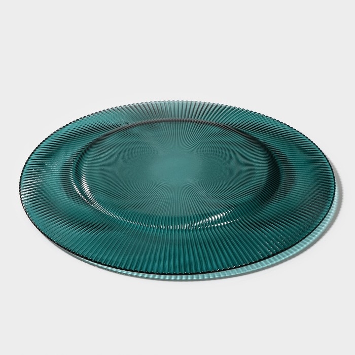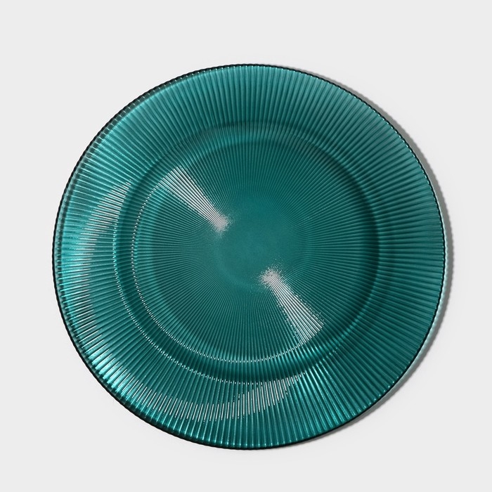 Тарелка стеклянная «Эмеральд», d=27 см, цвет бирюзовый с серебряной отводкой