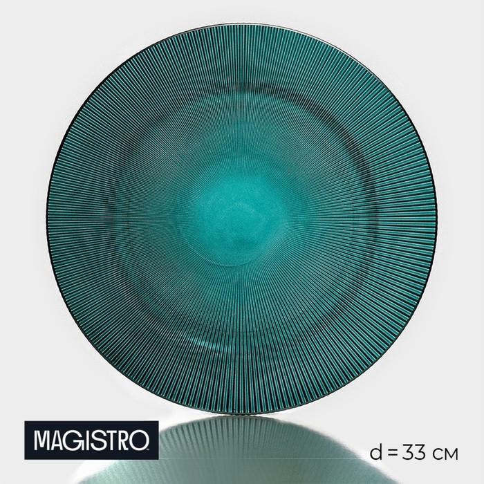 Тарелка - блюдо подстановочное «Эмеральд», d=33 см, цвет зелёный с серебряной отводкой