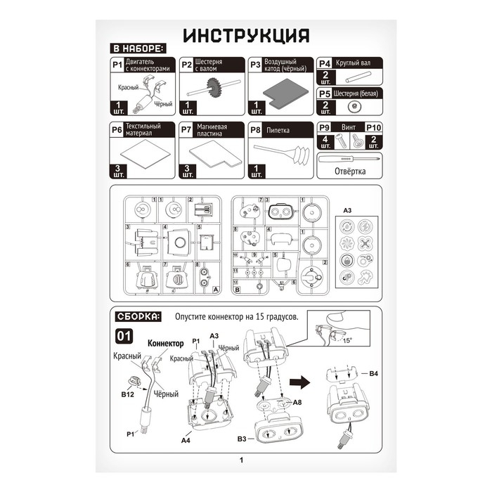 Сборка модели поможет в развитии мелкой моторики, логики, мышления и воображения. В процессе увлекательной игры маленький исследователь познакомится с принципом работы электричества.
