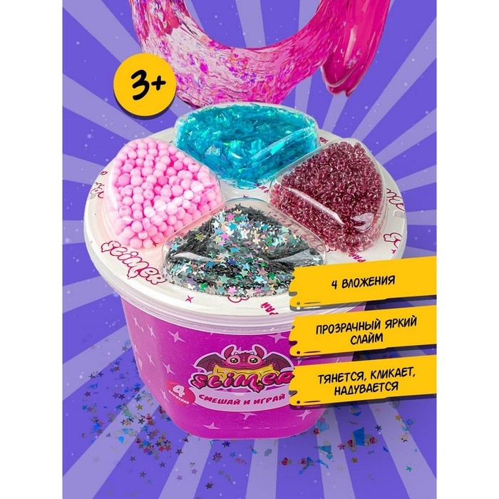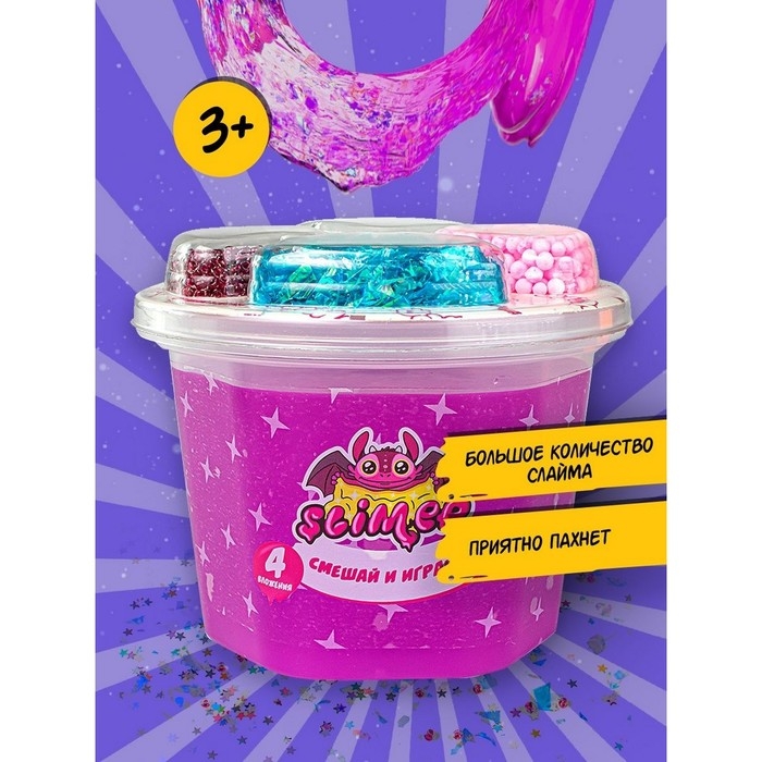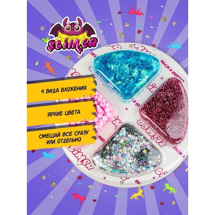 Слайм «Единорог» — это набор, с которым можно экспериментировать, замешивая в массу разные наполнители. Добавляйте в слайм посыпки, блёстки и шарики, они разнообразят внешний вид игрушки, и она будет выглядеть так, будто усыпана драгоценными камешками!